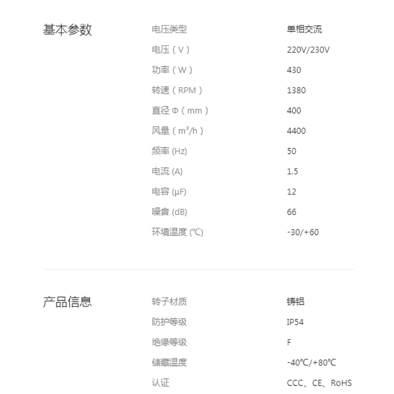 • YWF.B4S-400-188AB10全新400系列IP54后傾離心風(fēng)機(jī)F級免