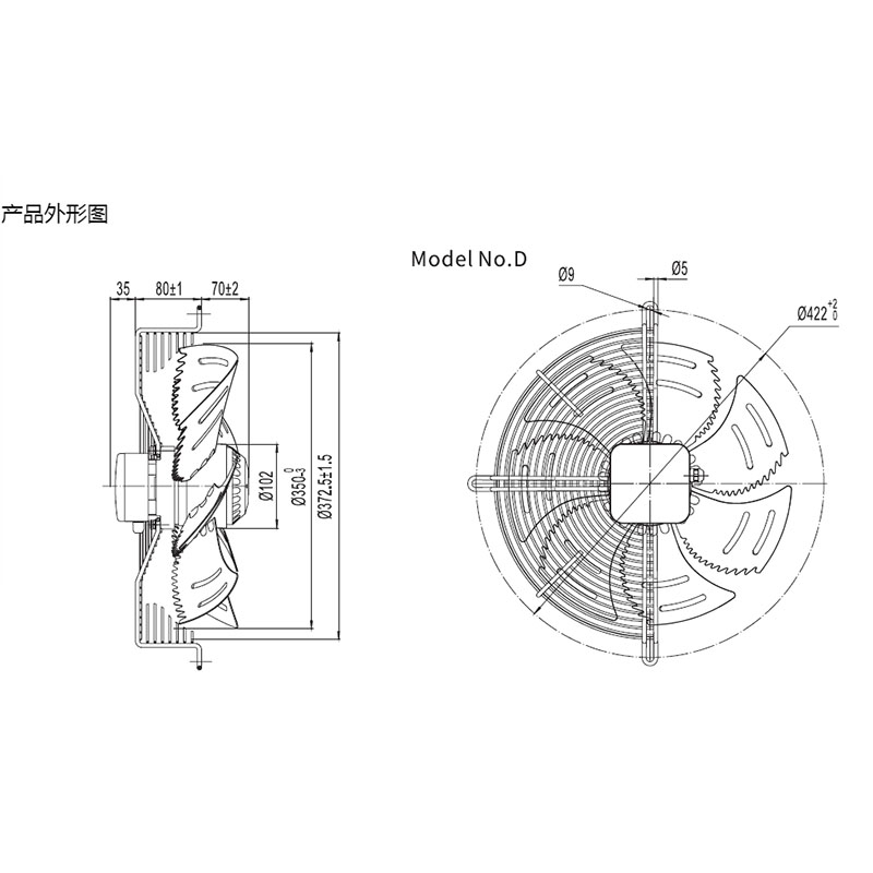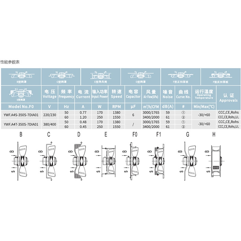 YWF.A4S-350S-7DIA01冷庫專用排風外轉子低噪聲網罩軸