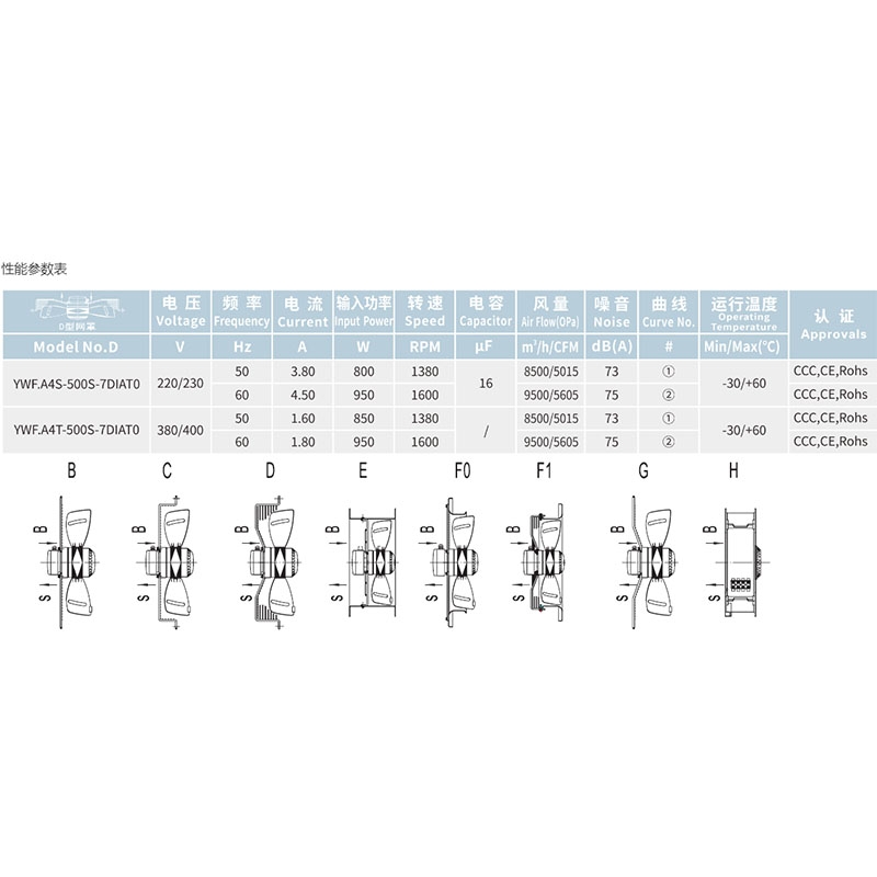 YWF.A4S-500S-7DIAT0全新馬爾微光三木外轉子軸流風機