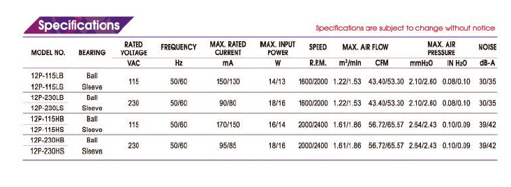 12P-115HB全系列臺灣百瑞B(yǎng)i-Sonic軸流風扇